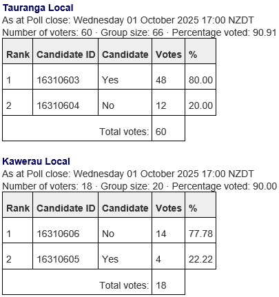 Tauranga and Kawerau Local members were balloted on a new agreement to replace the 2007 Tauranga Kawerau Amalgamation agreement.