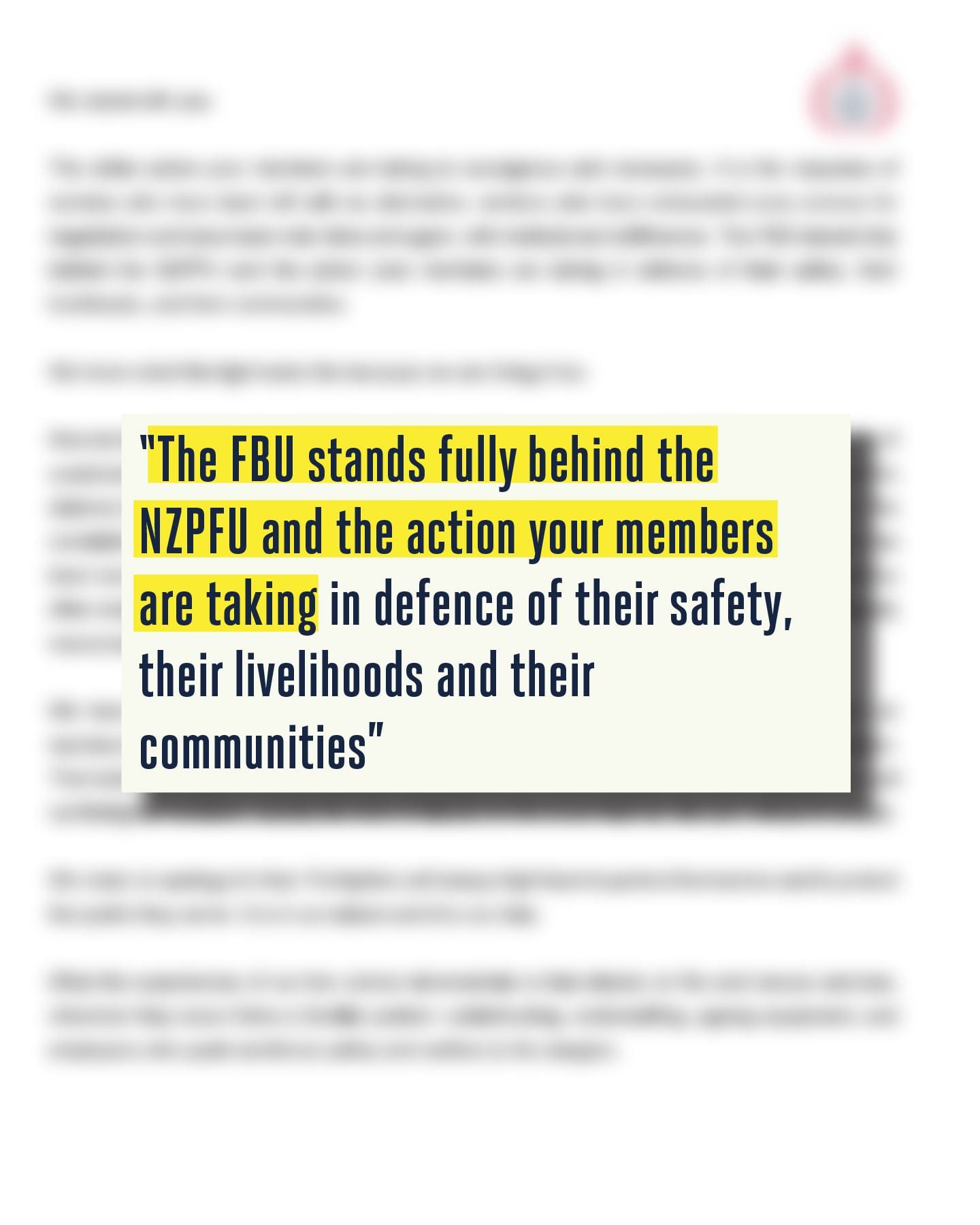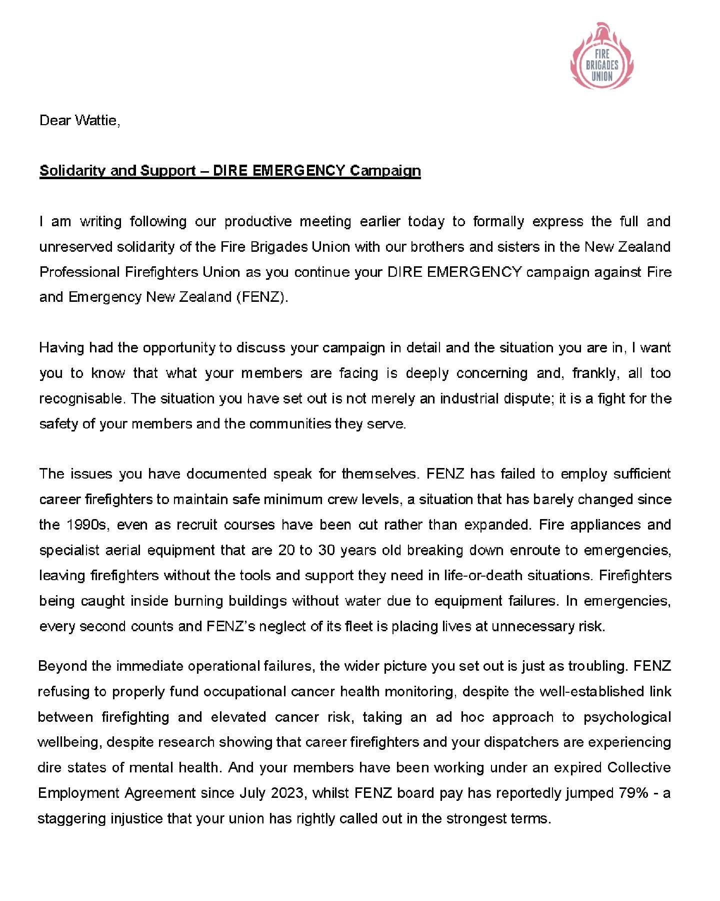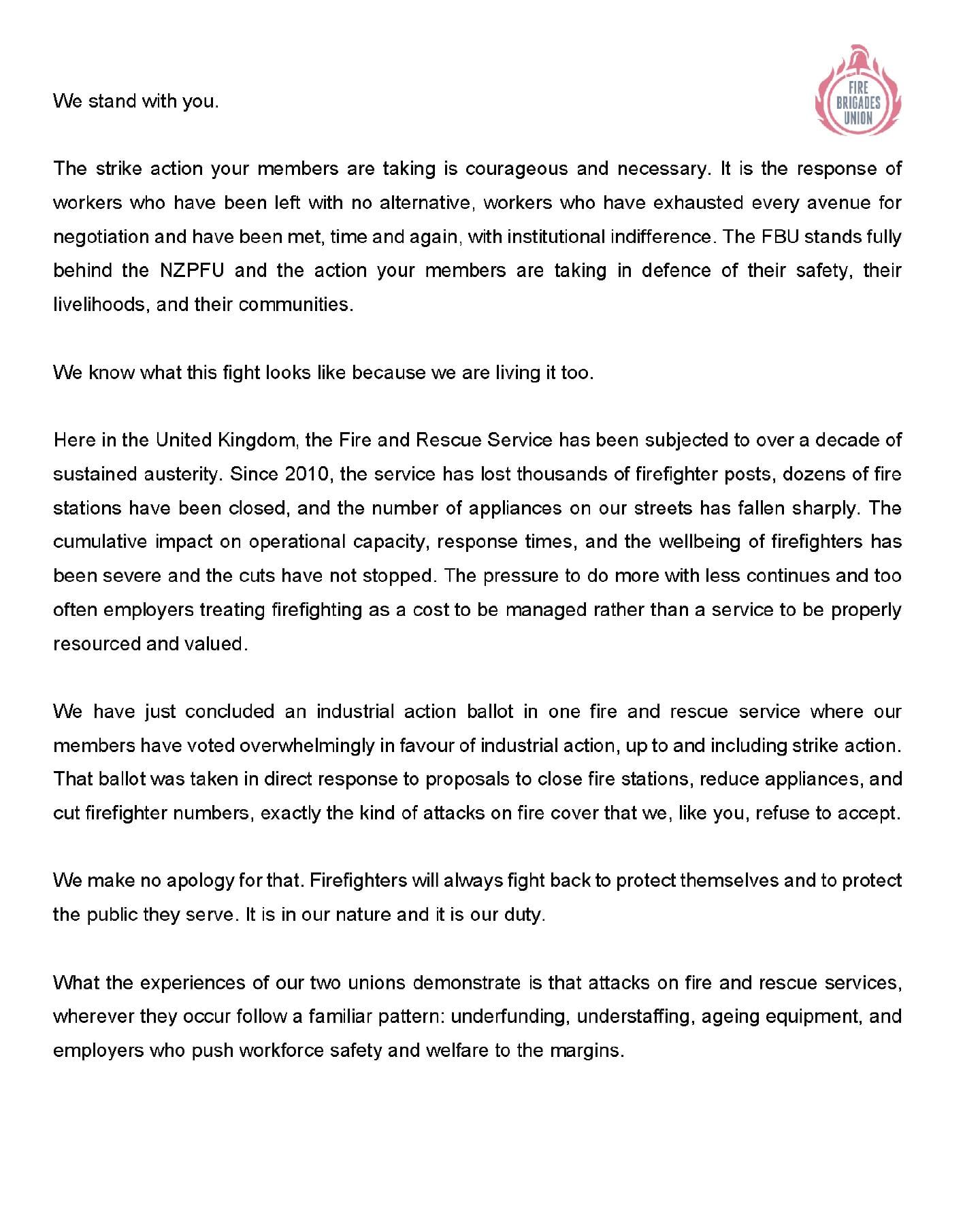 Attached is a letter of solidarity from the FBU who have real experience of dishonest and underhanded management focused on driving down the level and capability of emergency response.